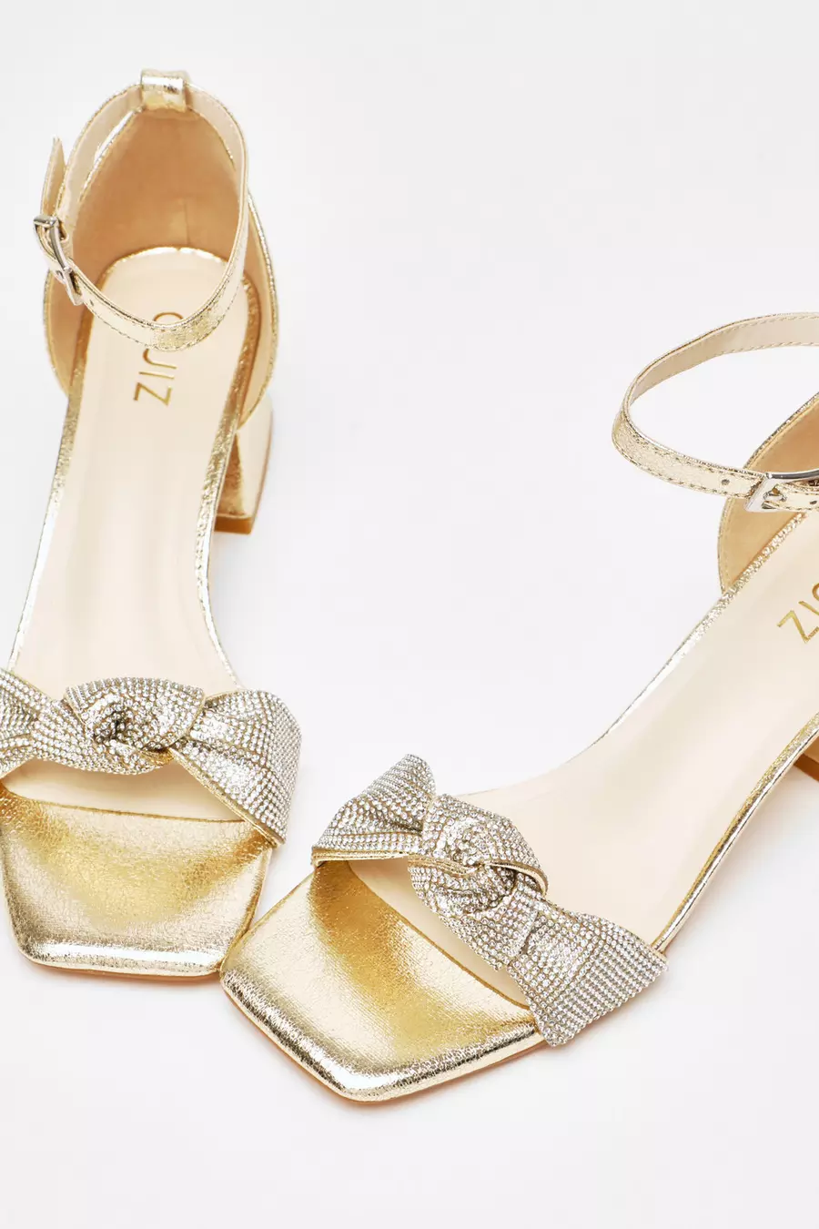 Gold Foil Diamante Knot Block Heeled Sandals QUIZ Clothing Very well made.