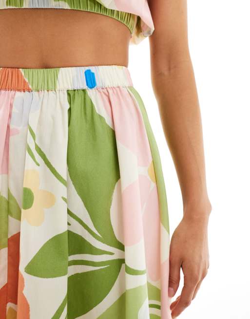 ASOS DESIGN cotton a line midi skirt in bright abstract floral print part of a set Very well made.