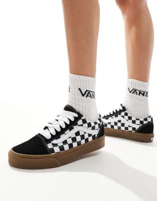 Vans old skool trainers with oversized laces in black and white checkerboard with gum sole Very well made.