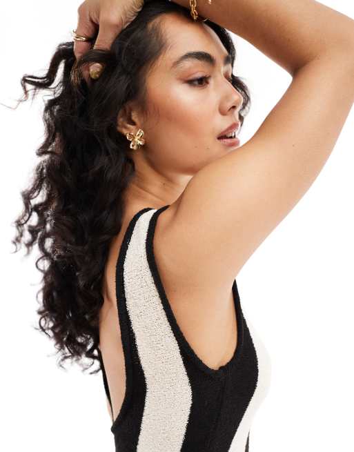 ASOS DESIGN knitted textured vertical stripe midaxi dress in mono ASOS Very well made.