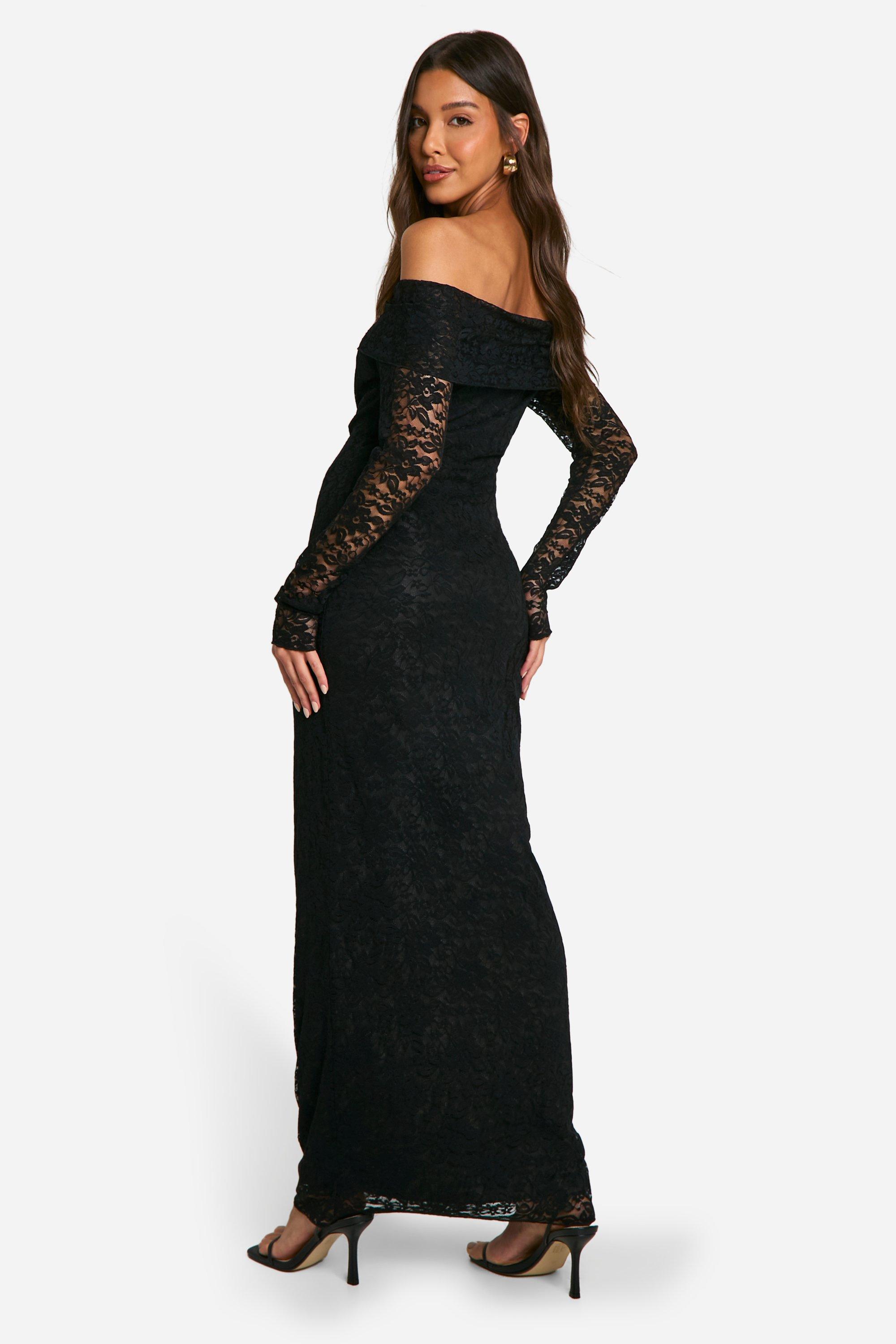 Black Acetate Slinky Bardot Long Sleeve Maxi Dress PrettyLittleThing Very well made.