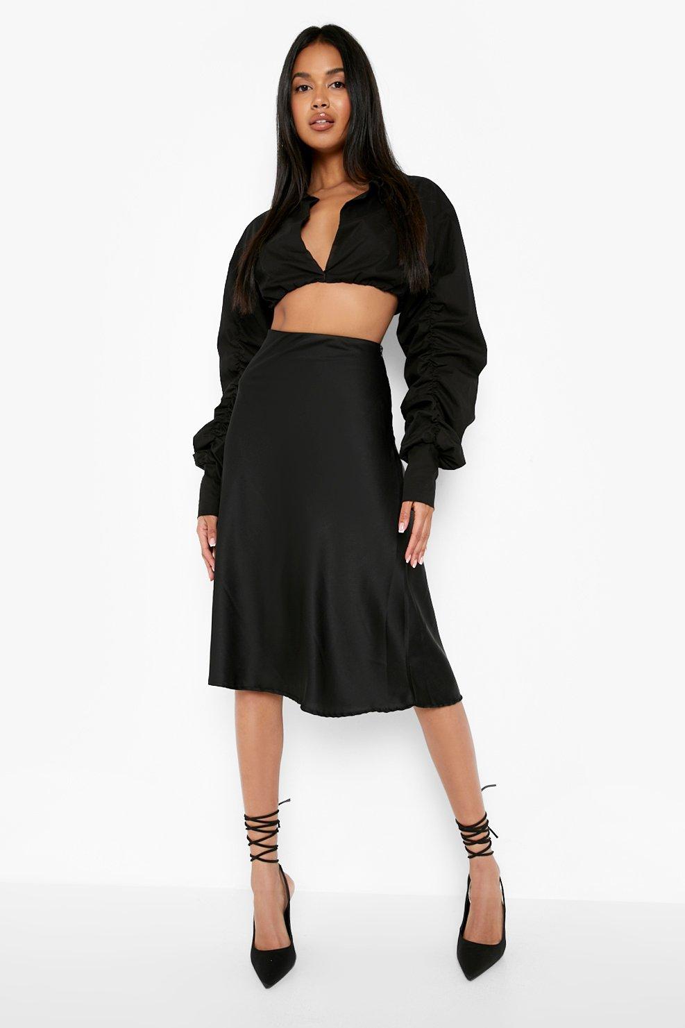 Black Satin Bias Cut Midi Skirt PrettyLittleThing Very well made.