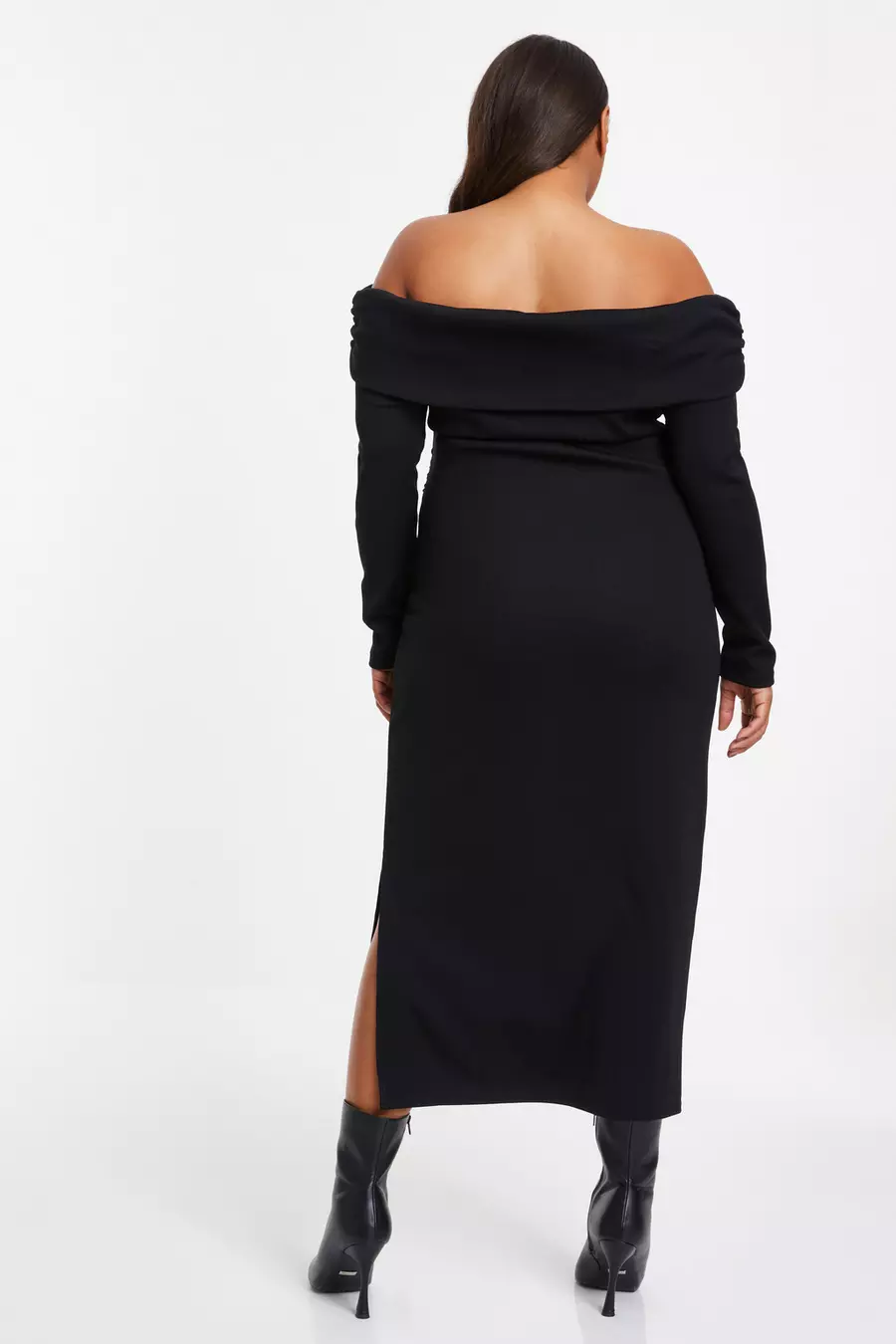 Black Bardot Bodycon Midi Dress Dresses Femme Luxe UK Very well made.