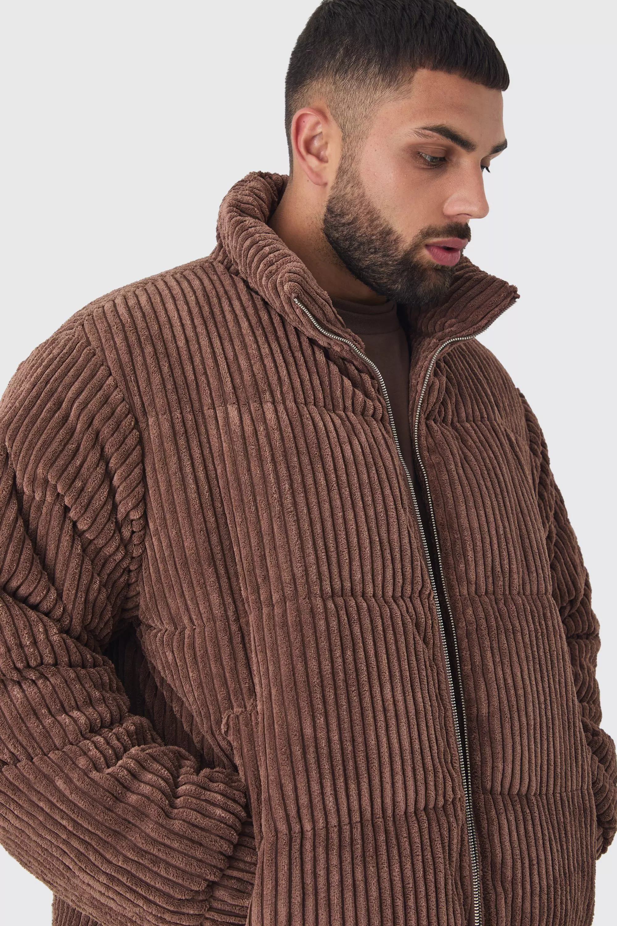 Plus Jumbo Cord Funnel Neck Puffer Jacket In Black boohooMAN UK Very well made.
