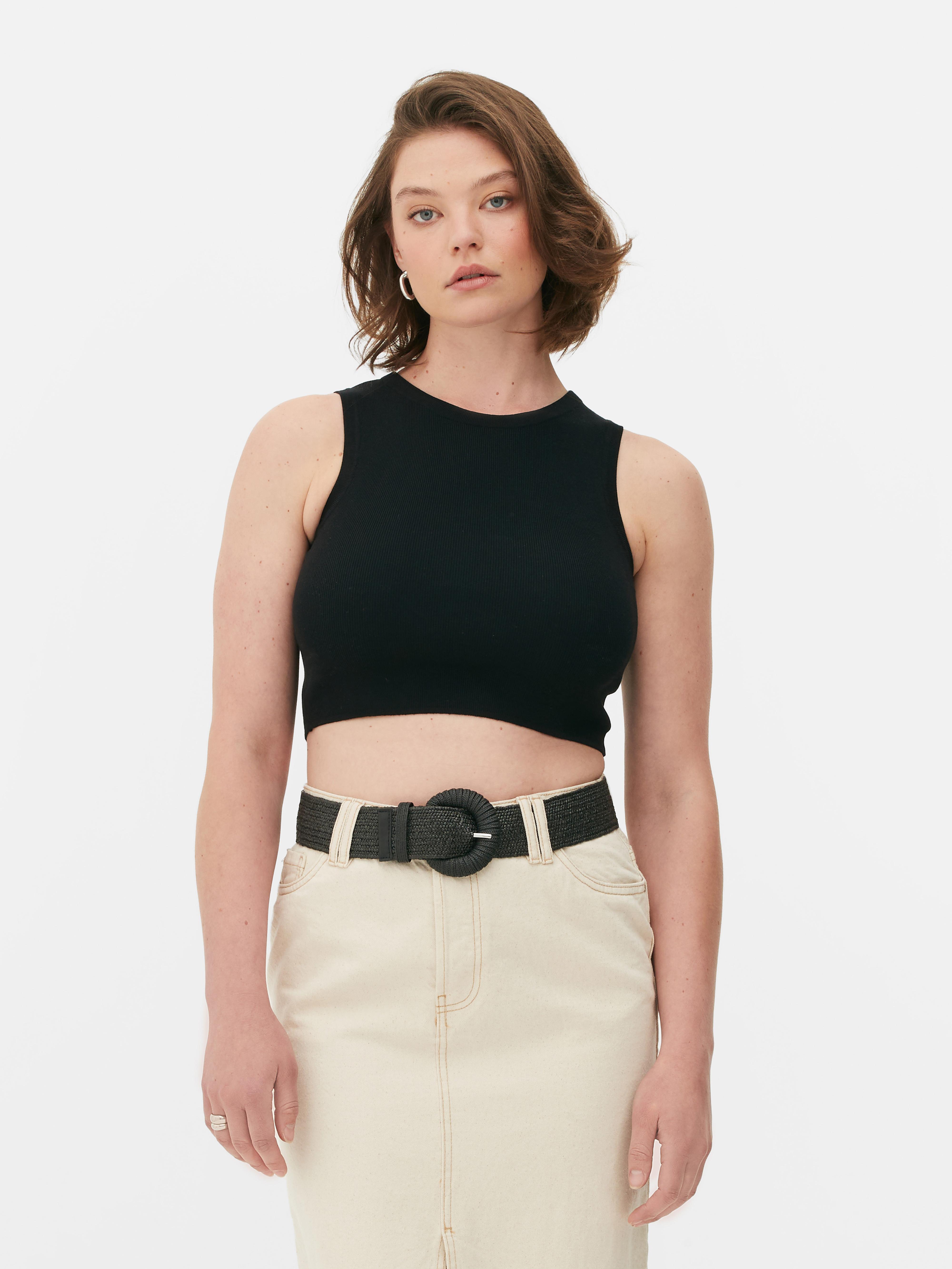Womens Black Crew Neck Rib Knit Crop Tank Top Primark Very well made.