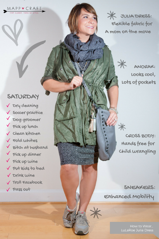 LuLaRoe Key Piece 5 Julia Dress Black White Print MappCraft Very well made.