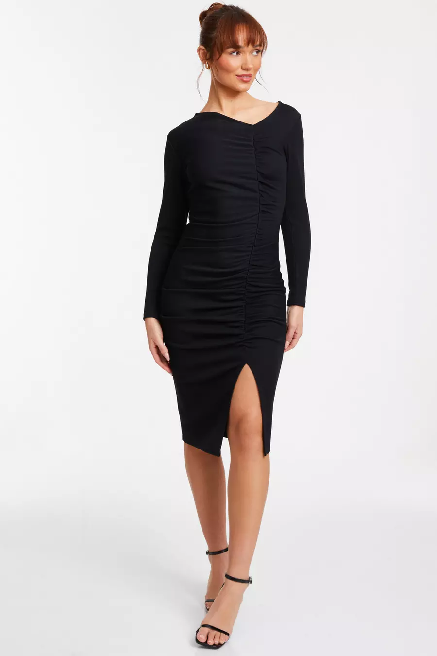 Black Ruched Asymetric Midi Dress QUIZ Clothing Very well made.