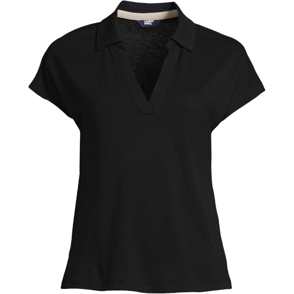 Women s Linen Blend Johnny Collar Polo Lands End Very well made.