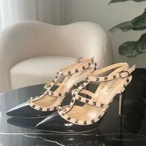 VALENTINO Rockstud 65 Heels 37.5 Black and Creme Bag Religion Very well made.