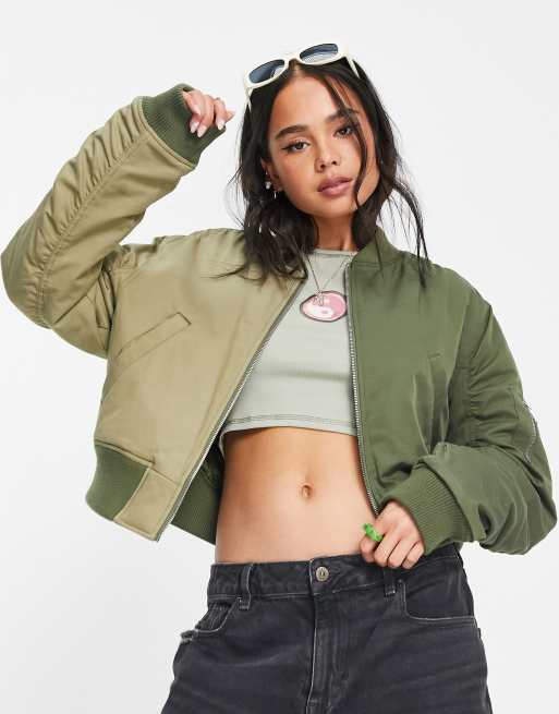 Topshop cropped half and half contrast bomber jacket in khaki ASOS Very well made.