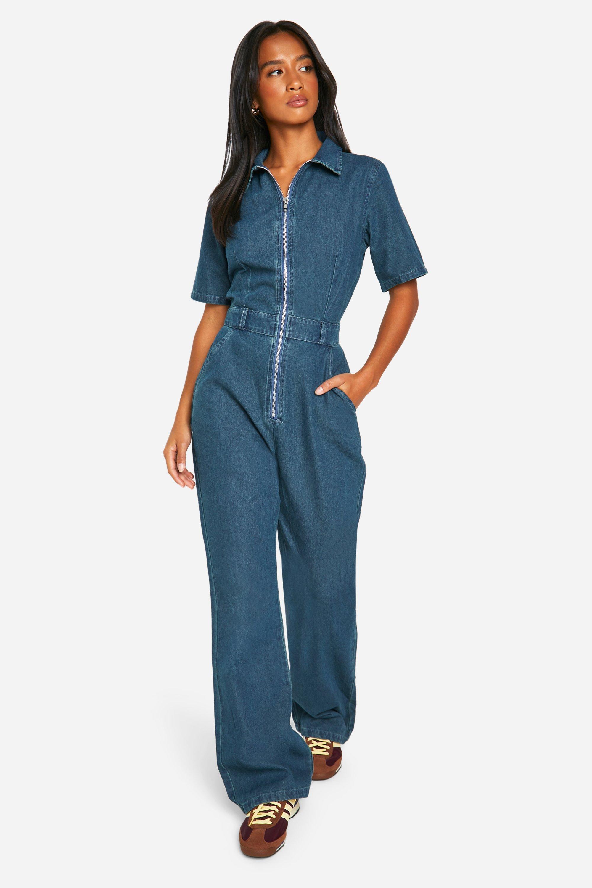 Petite Denim Zip Up Boilersuit boohoo Very well made.