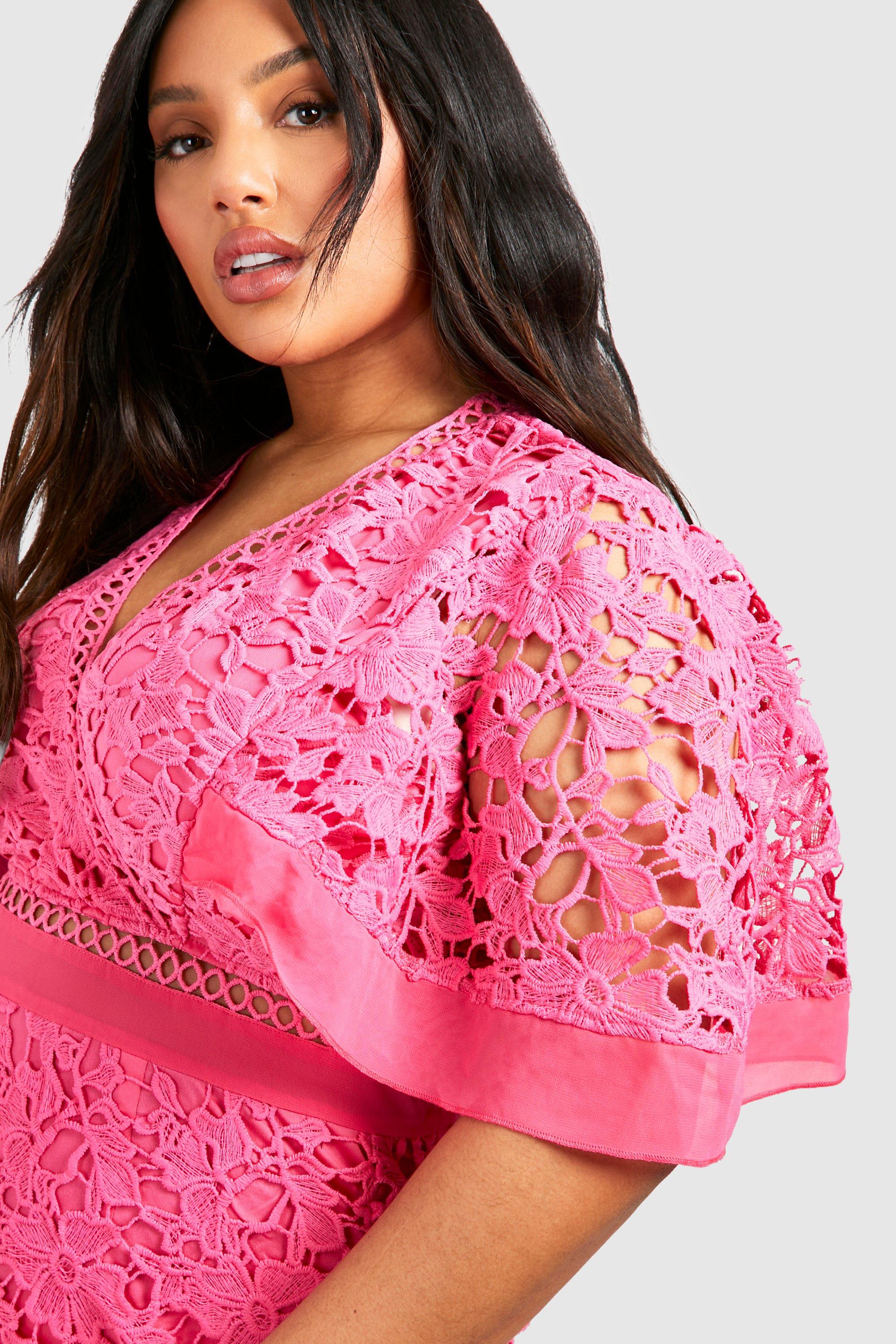 Plus Premium V Neck Tiered Lace Dress boohoo UK Very well made.