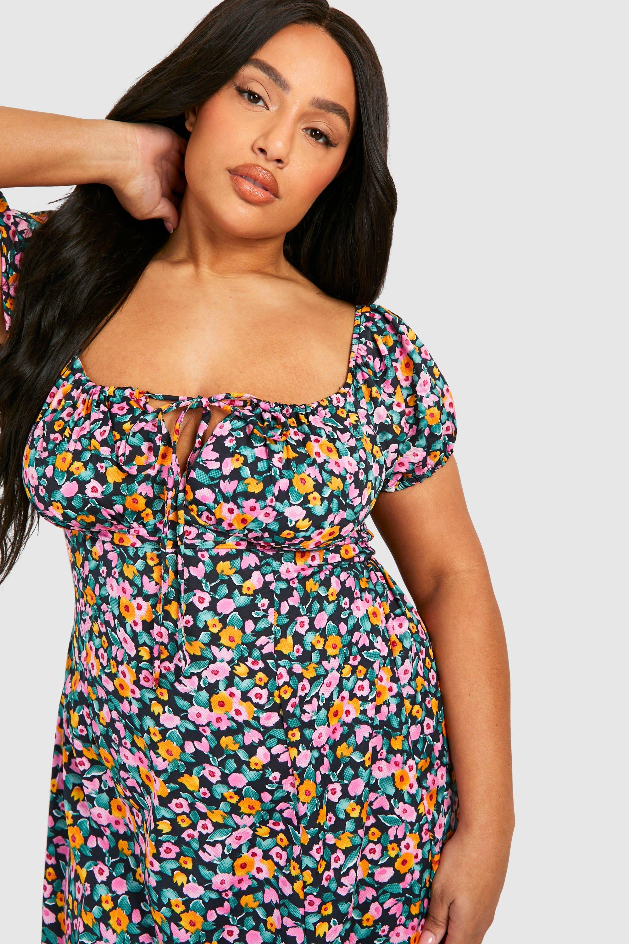 Plus Floral Puff Sleeve Split Midi Dress boohoo IE Very well made.