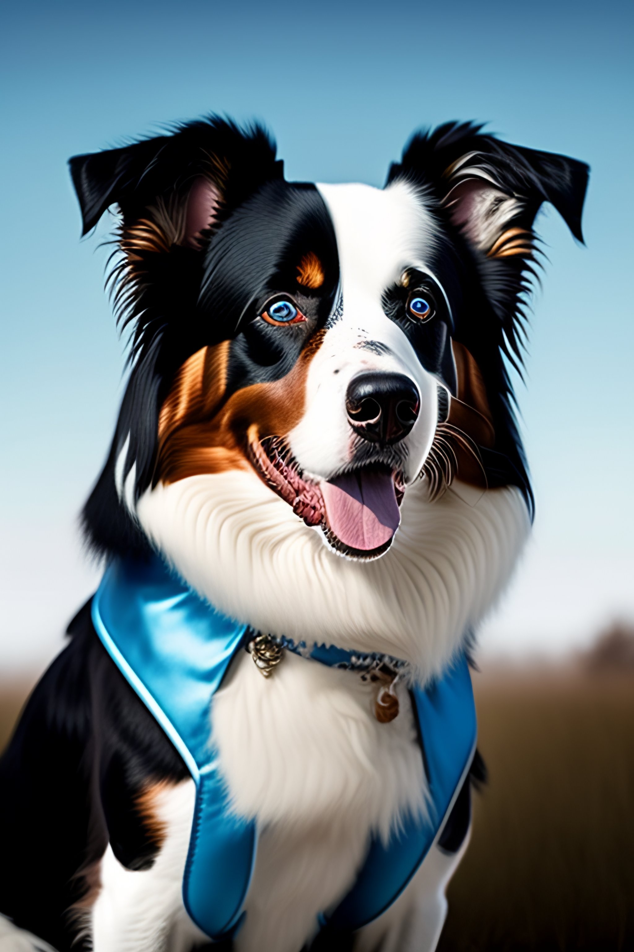 Lexica A border Collie with light blue eyes wearing a dracula costume Very well made.