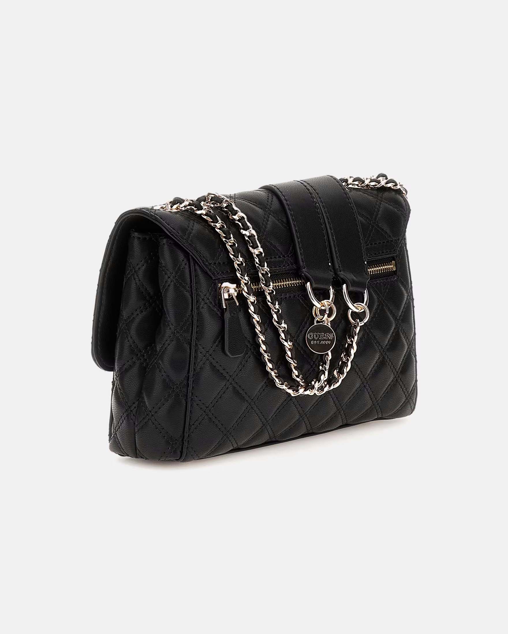 GUESS Borsa a tracolla trapuntata con manico a catena da donna della fabbrica Nero nero Very well made.