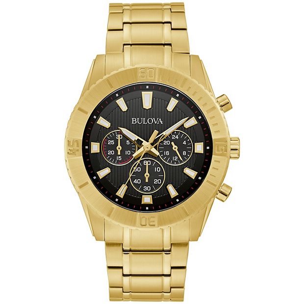 Bulova Men s Classic Gold Tone Stainless Steel Black Chronograph Dial Bracelet Watch 97A165 Very well made.