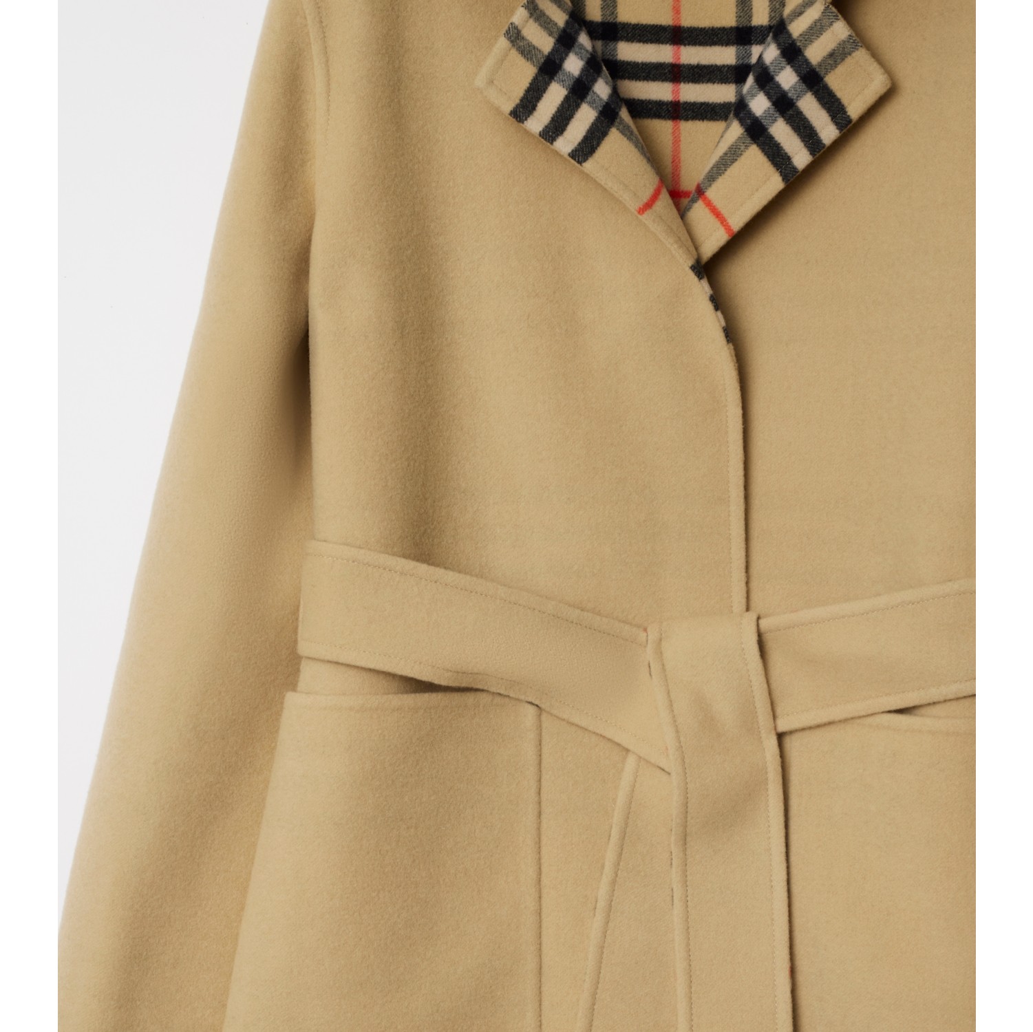 Mid length Reversible Check Wool Car Coat in Flax Women Burberry Official Very well made.