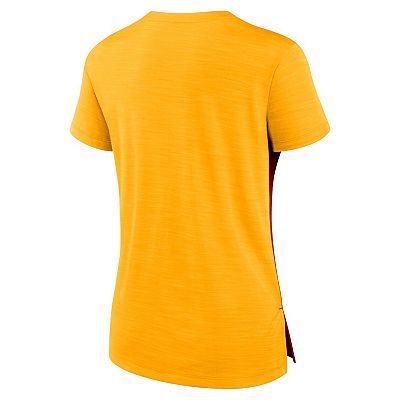 Women s Nike Burgundy Gold Washington Commanders Impact Exceed Performance Notch Neck T Shirt Very well made.