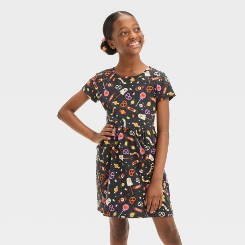 Girls Short Sleeve Halloween Candy Dress Cat Jack Black Xs Target Very well made.