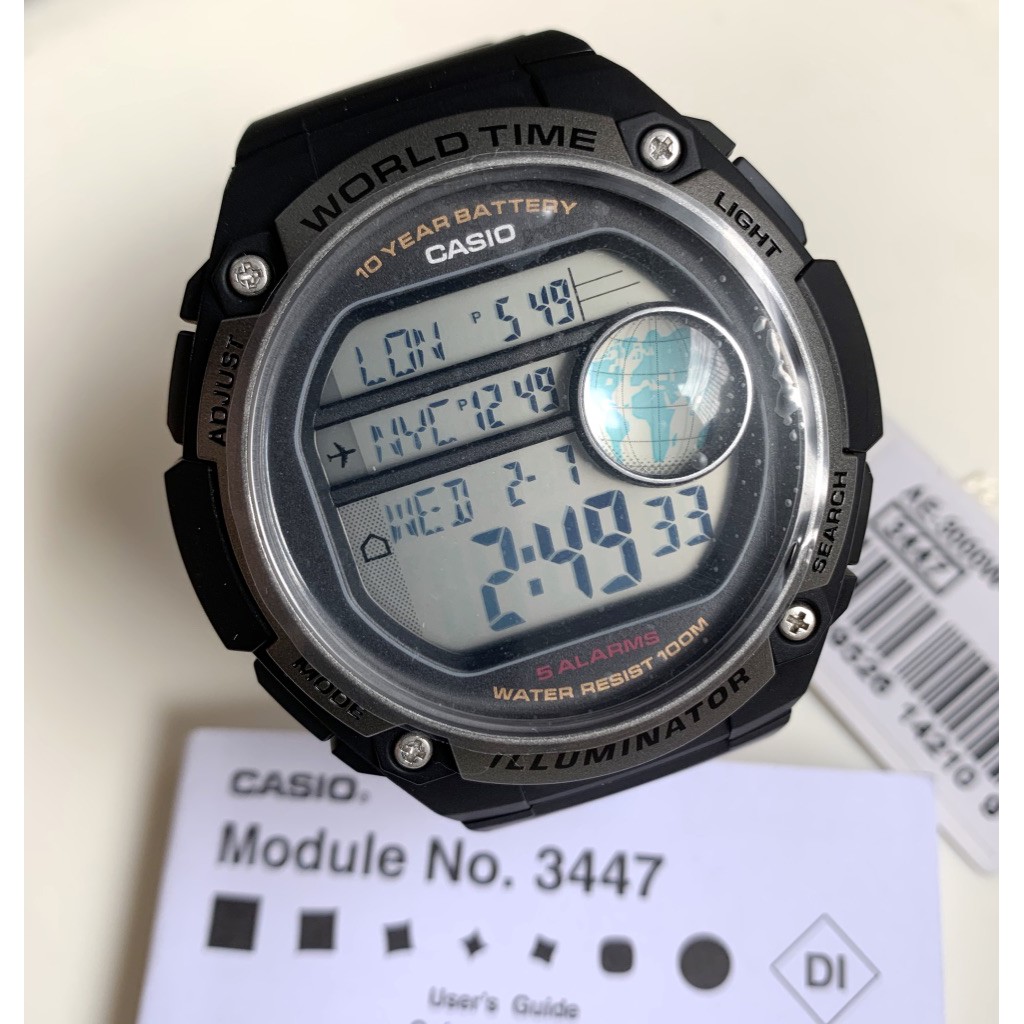 CASIO AE 3000W Module 3447 HOW TO SET the Time Date World Time Alarms Stopwatch Timer Very well made.