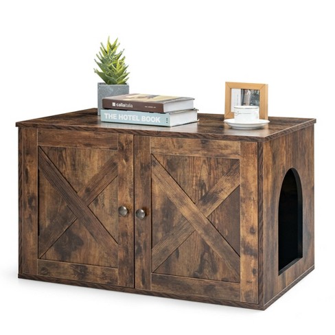 Costway Wooden Cat Litter Box Enclosure Hidden Cabinet Furniture w Divider Pet House Very well made.