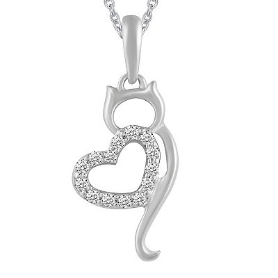 Royal Aura Sterling Silver Diamond Accent Cat Heart Pendant Necklace Very well made.