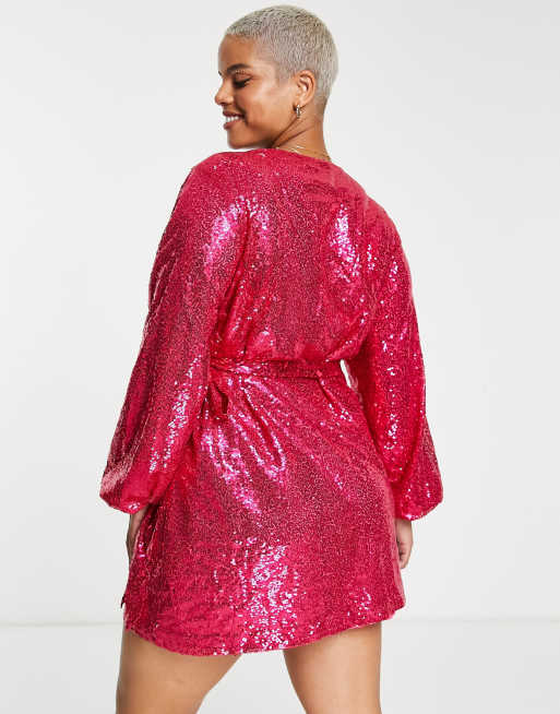 In The Style Plus exclusive sequin wrap detail mini dress in cerise pink ASOS Very well made.