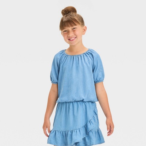 Girls Short Sleeve Woven Top Cat Jack Light Wash Chambray M Target Very well made.