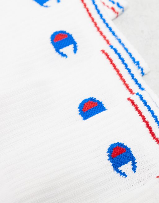 Champion 3 pack crew socks in white with red and blue Very well made.