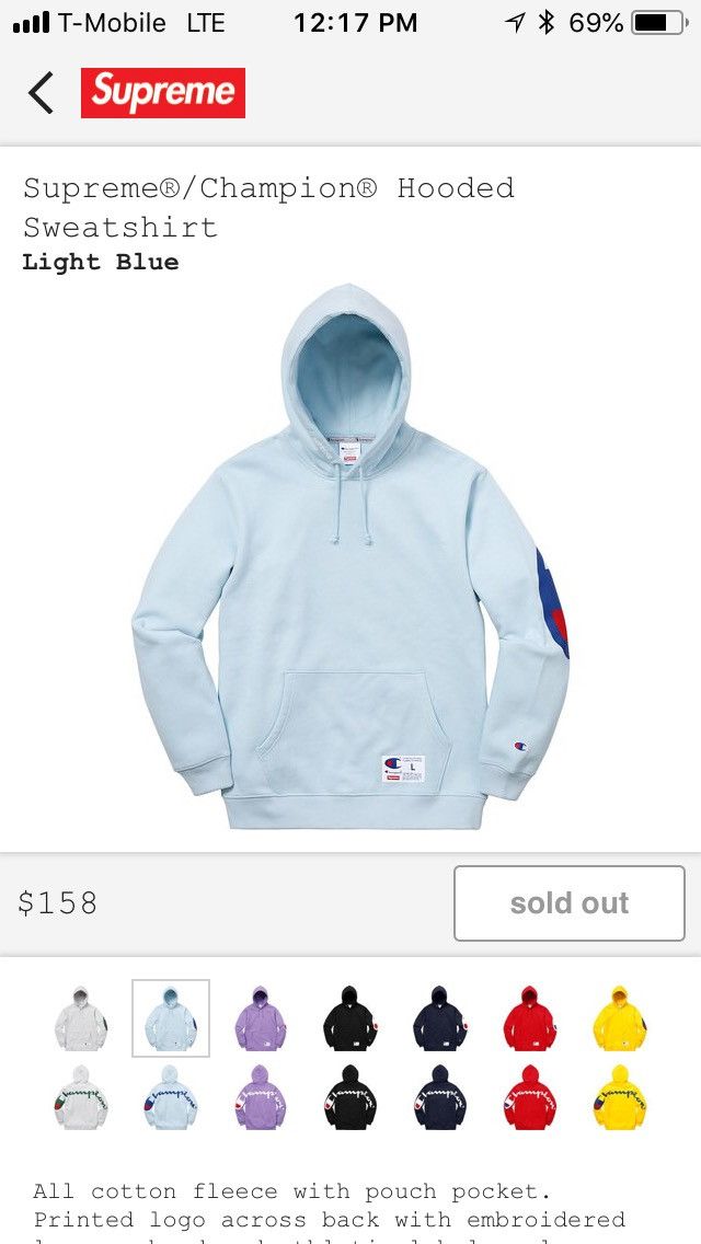 Champion Supreme Supreme Champion Hooded Sweatshirt Hoodie Light Blue Large L Grailed Very well made.