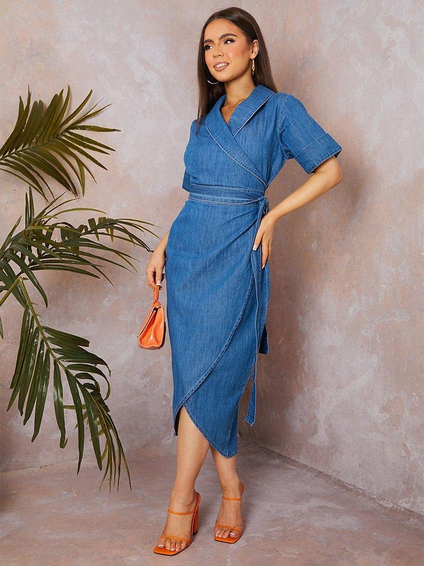 Chi Chi London Denim Wrap Midi Dress Blue Very well made.