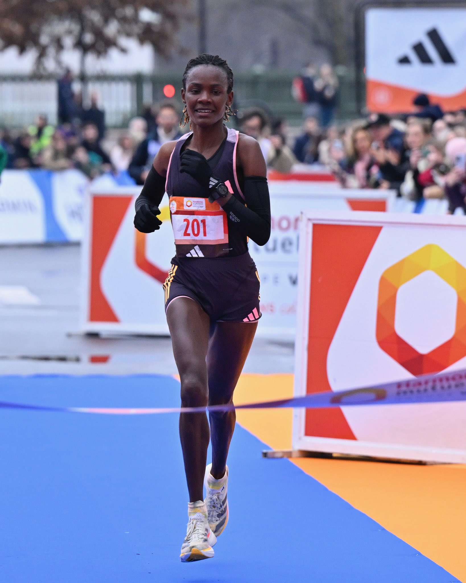 adidas on X adidas TAKE PARIS. Bernard Koech FLIES past the finish line to secure a win in the Paris Half. 1 00 45 Adizero Adios Pro 3 While Joan Melly Very well made.