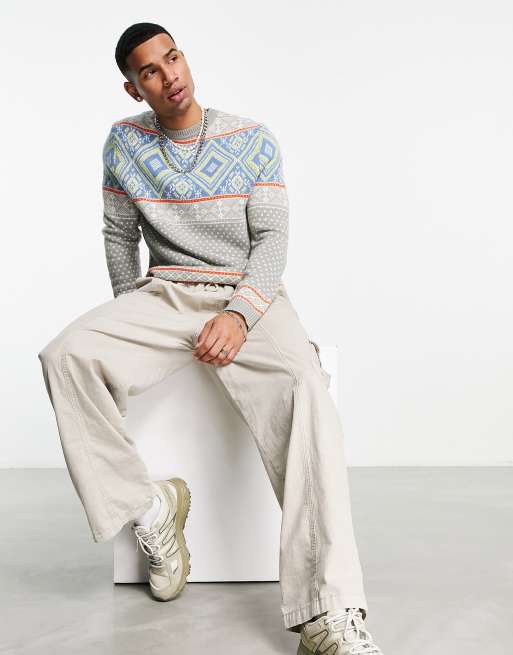 ASOS DESIGN knitted christmas jumper with fairilse design in grey Very well made.