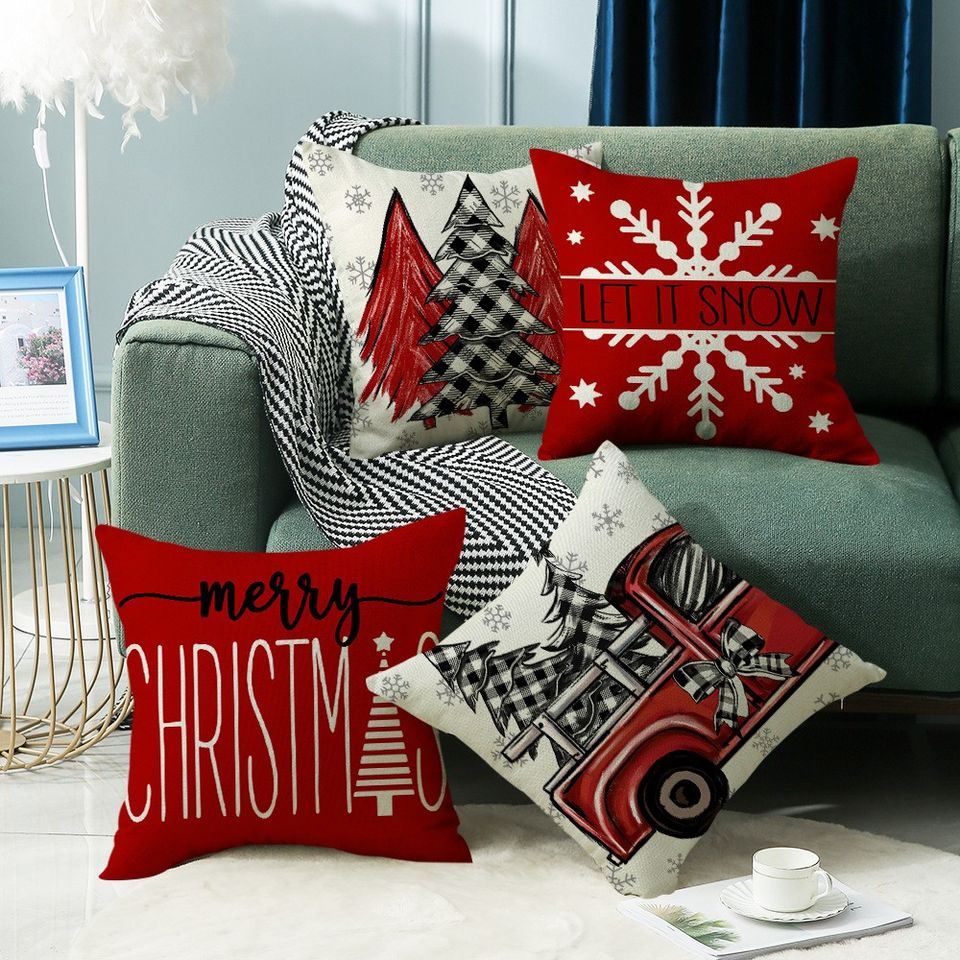 CAROMIO Christmas Cushion Cover Christmas Design Throw Pillow Covers Set of 4 Xmas Cushion Cover Throw Pillow Cover for Sofa Christmas Party Outdoor Indoor Use 18x18inch Amazon Home Kitchen Very well made.