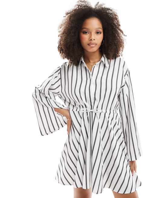 ASOS DESIGN mini shirt dress with ruched belt detail in mono stripe ASOS Very well made.