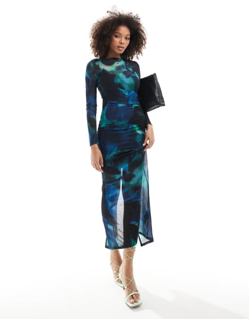 Ever New long sleeve mesh maxi dress in cobalt blur print ASOS Very well made.