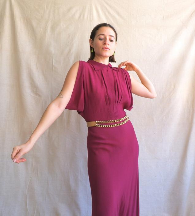 Vintage 30s Raspberry Cold Shoulder Rayon Gown 1930s Purple Pink Bottle of Bread Baltimore MD Very well made.