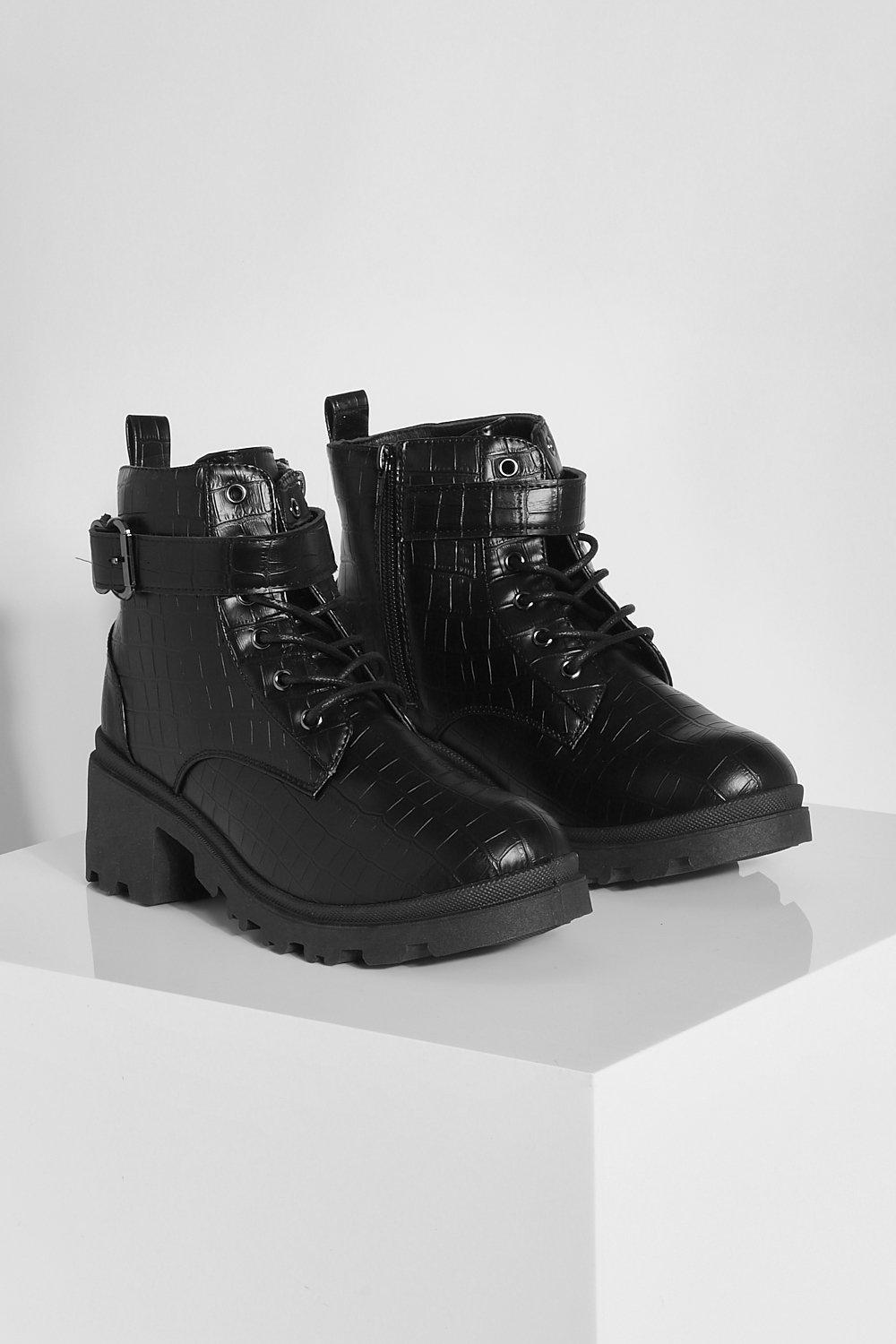 Croc Panel Chunky Buckle Combat Boots Very well made.