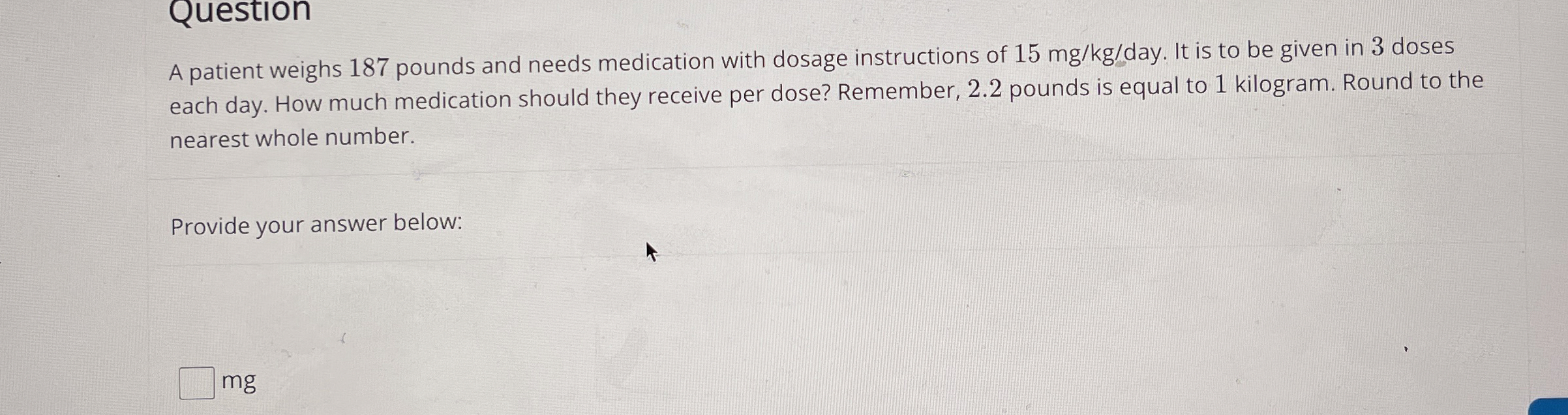 QuestionA patient weighs 187 pounds and needs Chegg Very well made.