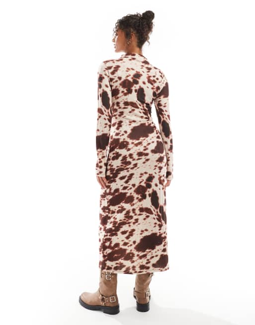 ASOS DESIGN chunky ribbed maxi dress with wrap waist in cow print Very well made.