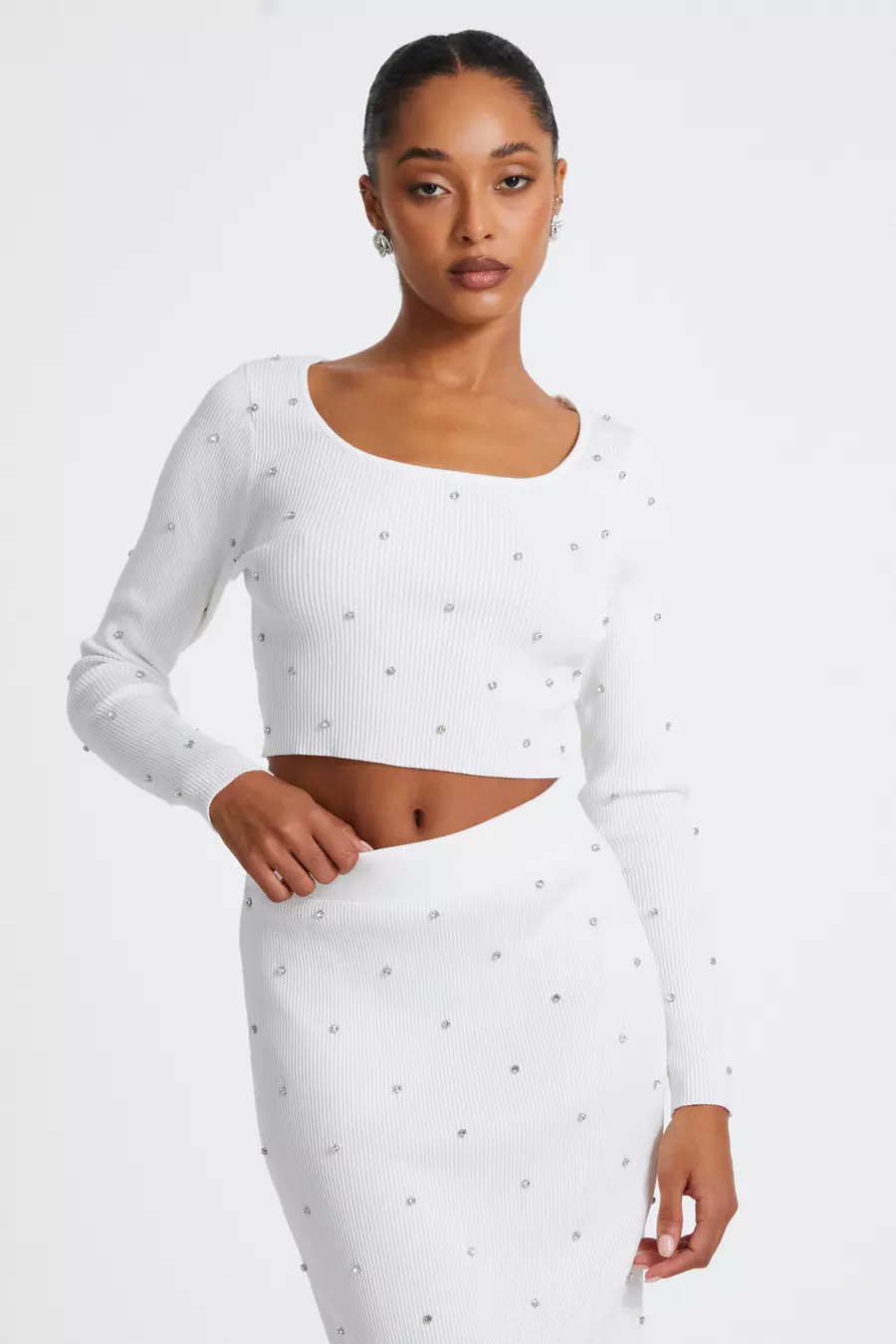 Cream Knit Diamante Cropped Jumper QUIZ Clothing Very well made.