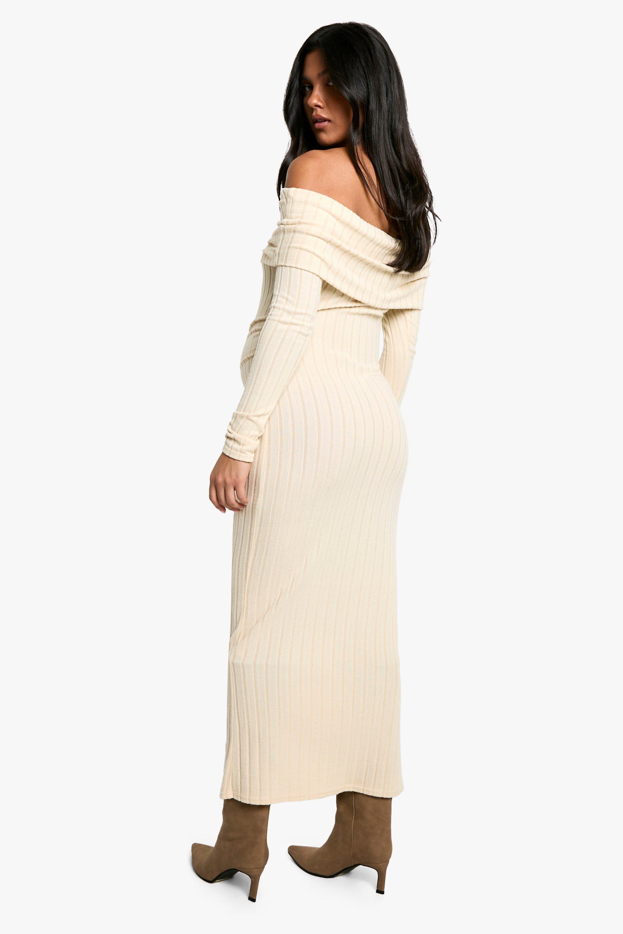 boohoo Maternity Textured Bardot Long Sleeve Maxi Dress White Size 12 Very well made.