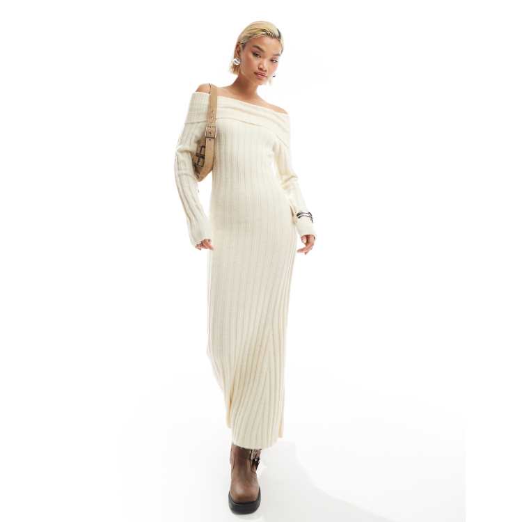 Glamorous off shoulder bodycon maxi knitted dress in cream ASOS Very well made.