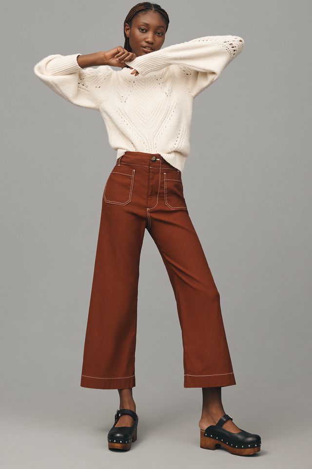 The Colette Cropped Wide Leg Pants by Maeve Merrick White Contrast Stitch Edition Anthropologie Very well made.