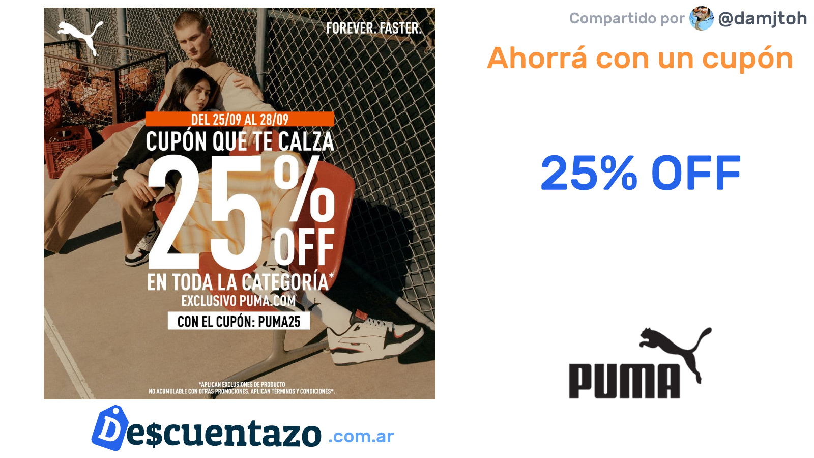 Cupon 25 de descuento en Calzado en PUMA Very well made.
