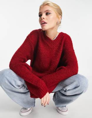 WESBR Women s Sweaters Casual Loose Red Jumper Sweater Women Fashion V neck Knitted Pullover Sweater Women Autumn Winter Wool Sweaters Color Dark blue Size US M Buy Online at Best Price in Very well made.