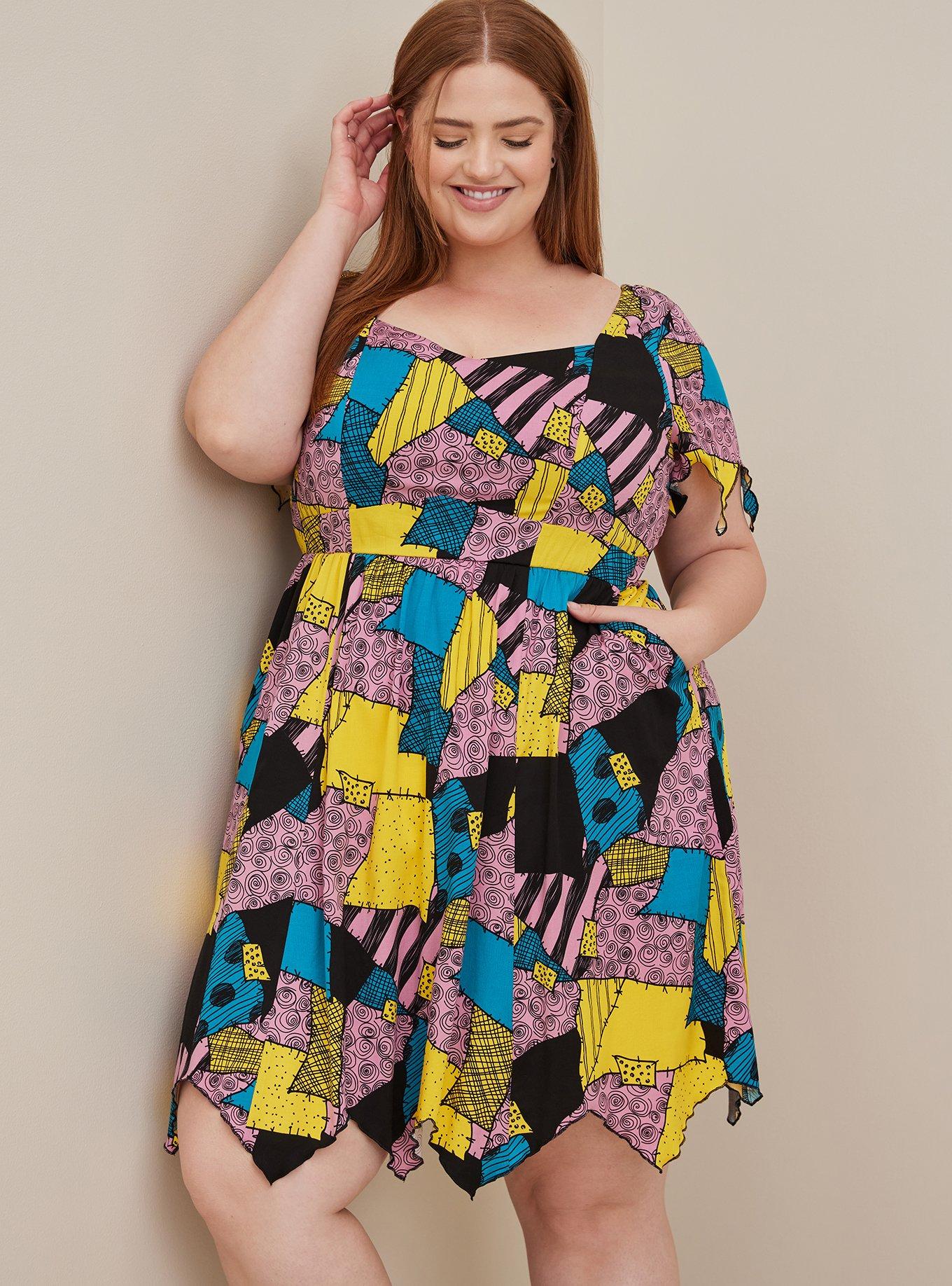 Plus Size Disney The Nightmare Before Christmas Jagged Skater Dress Sally Patches Torrid Very well made.