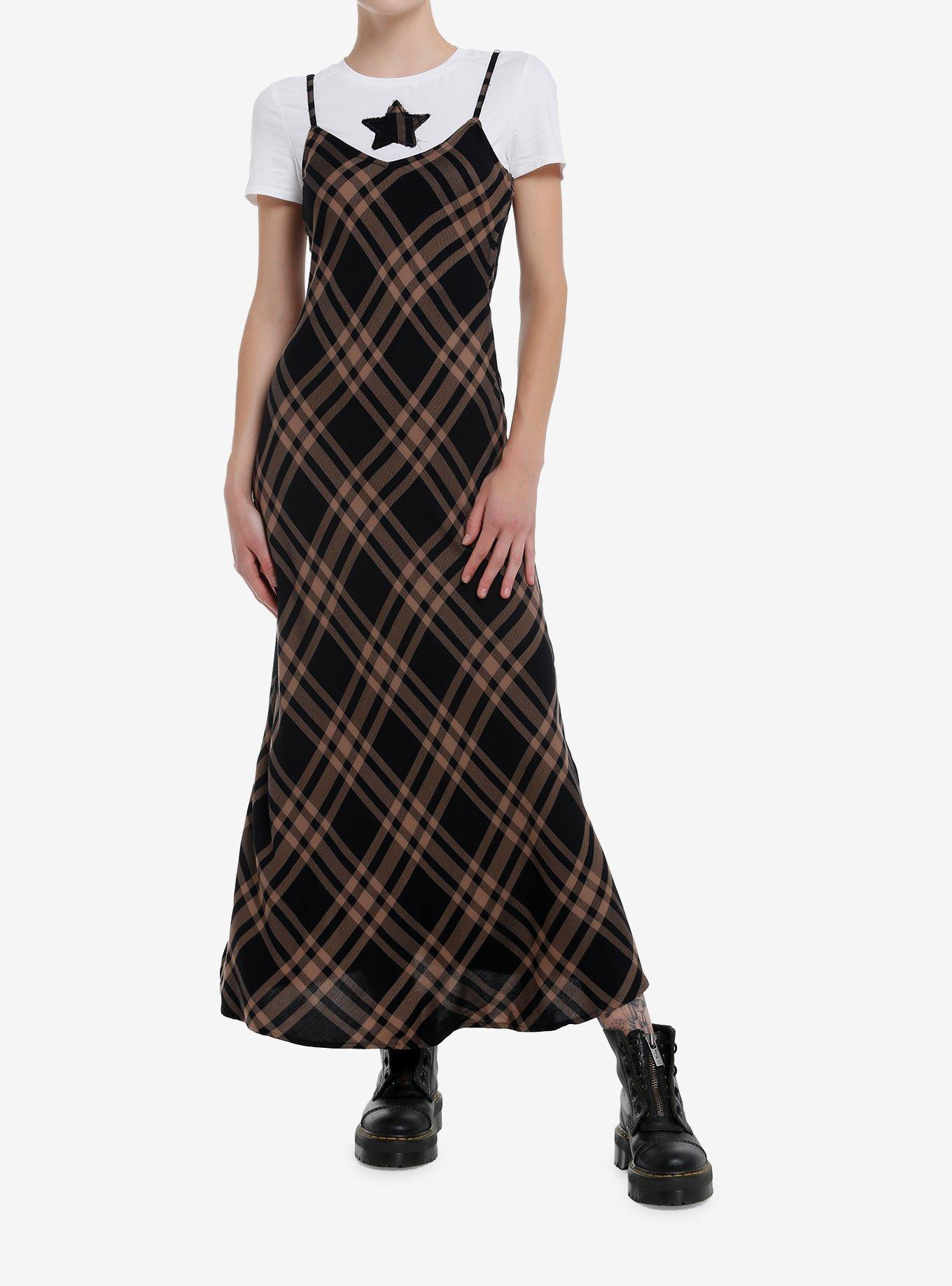 Brown Black Plaid Star Twofer Maxi Dress Hot Topic Very well made.