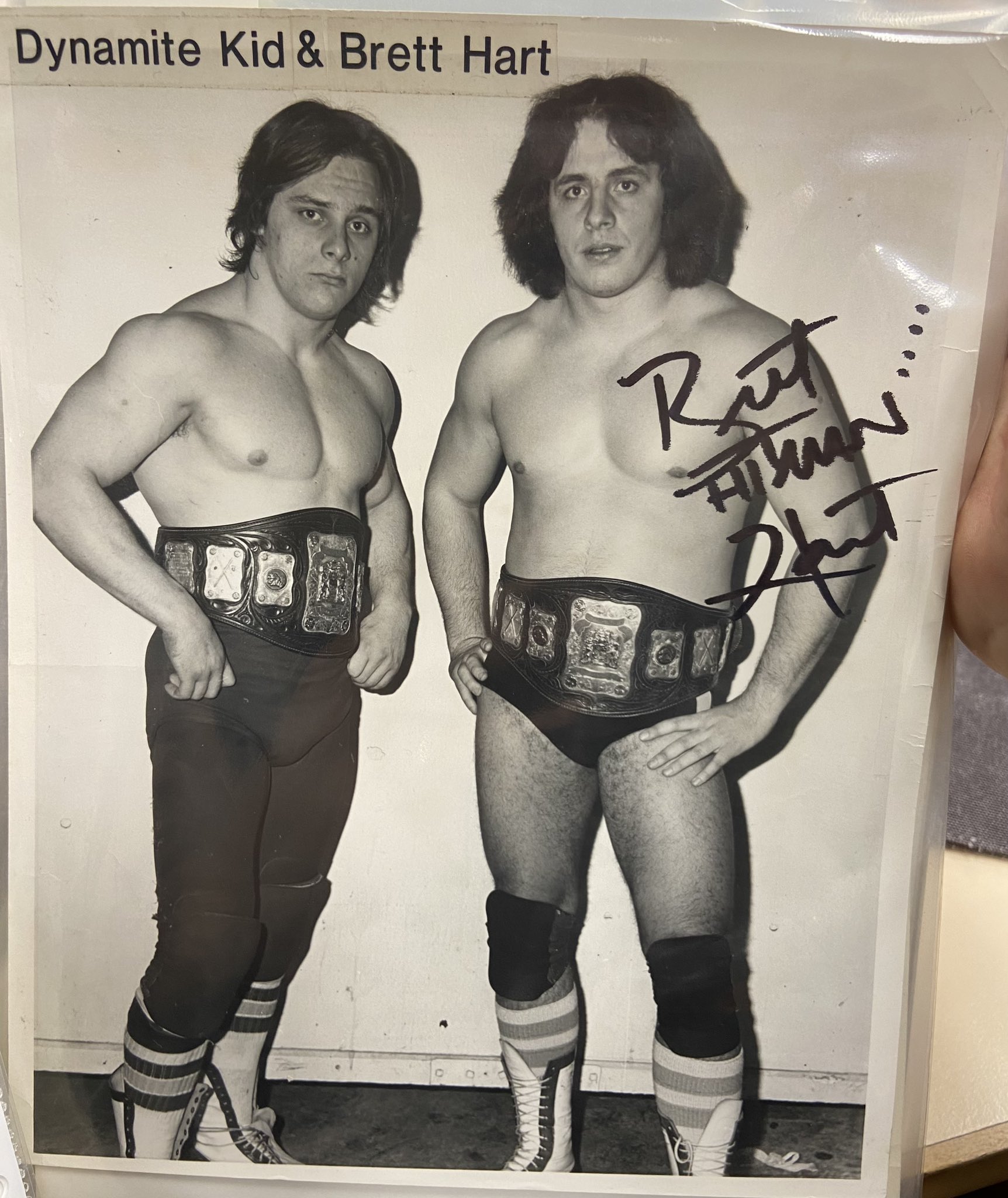 Ost s Wrestling Archive on X Dynamite Kid Bret Hart photographed with the Stampede tag titles https t ZqqLLmxJhF X Very well made.
