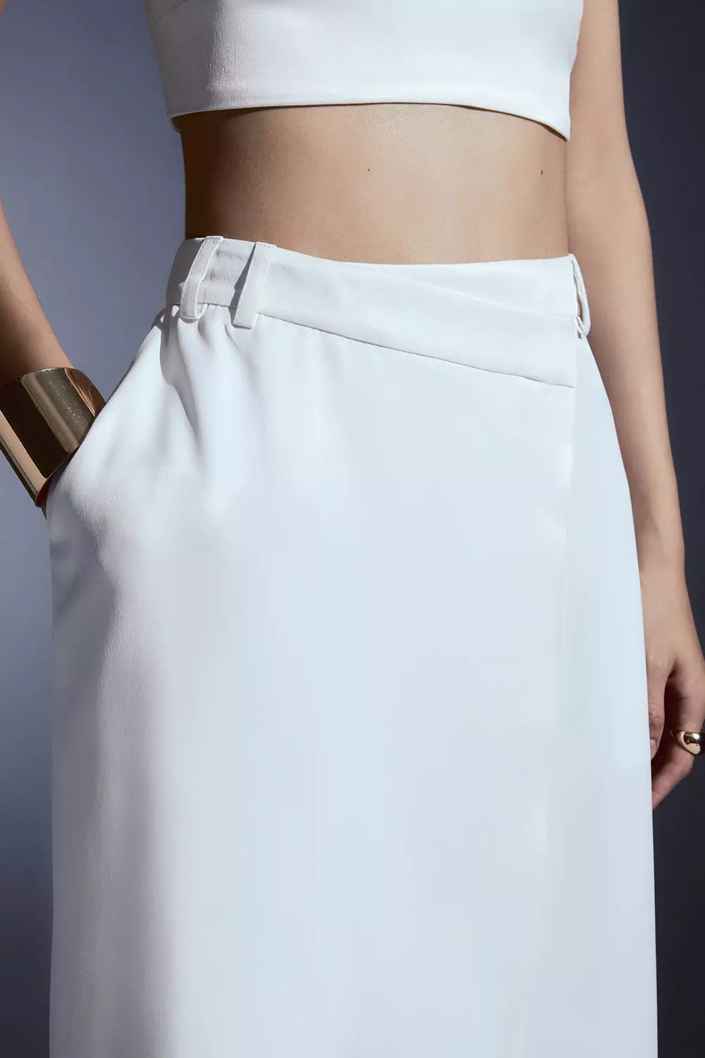 Tailored Satin Back Crepe Asymmetric Waist Wrap Detail Midi Skirt Karen Millen Very well made.